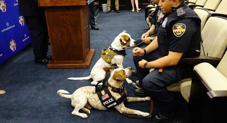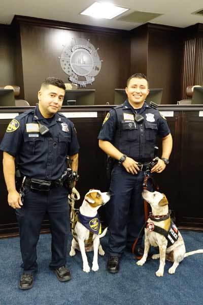 - La Ciudad de Laredo presentó a Dusty y Coco, los primeros perros de terapia policiales certificados de Laredo y la iniciativa del programa