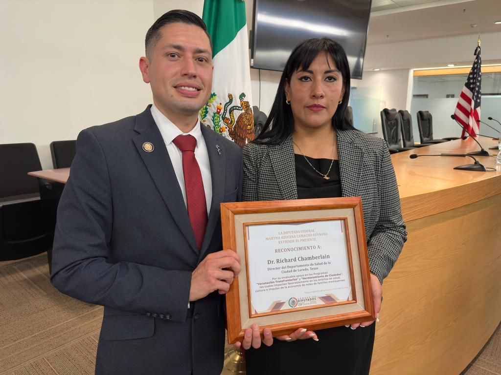 LAREDO, TX. – En un emotivo acto realizado el jueves en la Ciudad de México, el Congreso Mexicano honro a la ciudad de Laredo, Texas y funcionarios de la administración por su extraordinaria generosidad durante la pandemia de COVID-19. Este reconocimiento se debe a la valiosa ayuda brindada a los mexicanos en tiempos de dificultad.
